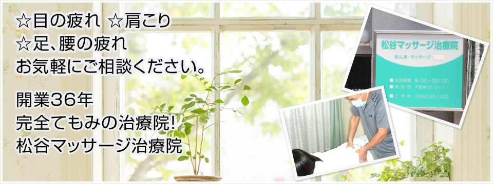 知多郡東浦町の松谷マッサージ治療院のホームページへお越しくださりまして誠にありがとうございます。